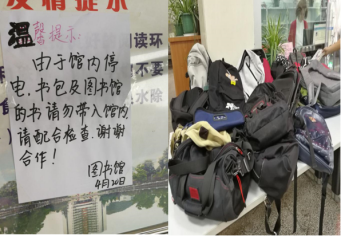 4月20日上午,接后勤处通知,图书馆区域电力仍不能恢复,在停电状况下,门禁系统是无法正常使用的,按照常规只能闭馆,图书馆党政领导紧急商议后,决定照常开馆。馆领导立即安排人员编排值班表,领导带领职工排班轮流值班,并在门口张贴提示,提醒读者因停电不能携带书包进馆,老师们抬出阅览桌供读者存放书包,值班老师对因停电造成的不便为读者做耐心的解释。读者们称赞虽然停电,图书馆仍给了大家一片温暖的港湾。