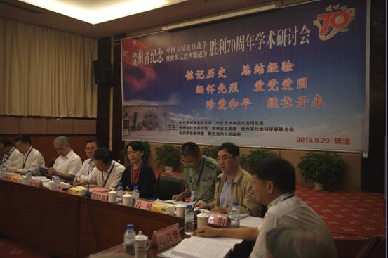 本网讯(曾凯) 8月29日,贵州省纪念中国人民抗日战争暨世界反法西斯战争胜利70周年学术研讨会在黔东南州镇远县举行,我校党委书记曾羽教授应邀出席大会并作主题演讲。