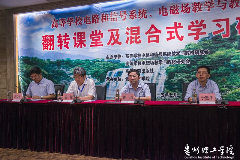 报告会阶段,北京大学汪琼、西安交通大学罗先觉、北京交通大学陈后金、东南 大学孟桥、北京邮电大学李巍海、华北电力大学卢斌先、贵州理工学院陈燕秀等 专家、学者分别作了《翻转为什么可能有效?》、《电路慕课制作的实践及用于 混合式教学的思考》、《信号与系统慕课建设》、《慕课面面谈》、《电路分析 基础混合教学模式探索》、《关于电磁场教材及教学内容几个问题的思考》、《 帮助学生跨越学习能力鸿沟》的报告,并与会人员进行热烈的交流讨论。最后还 进行了分组讨论。