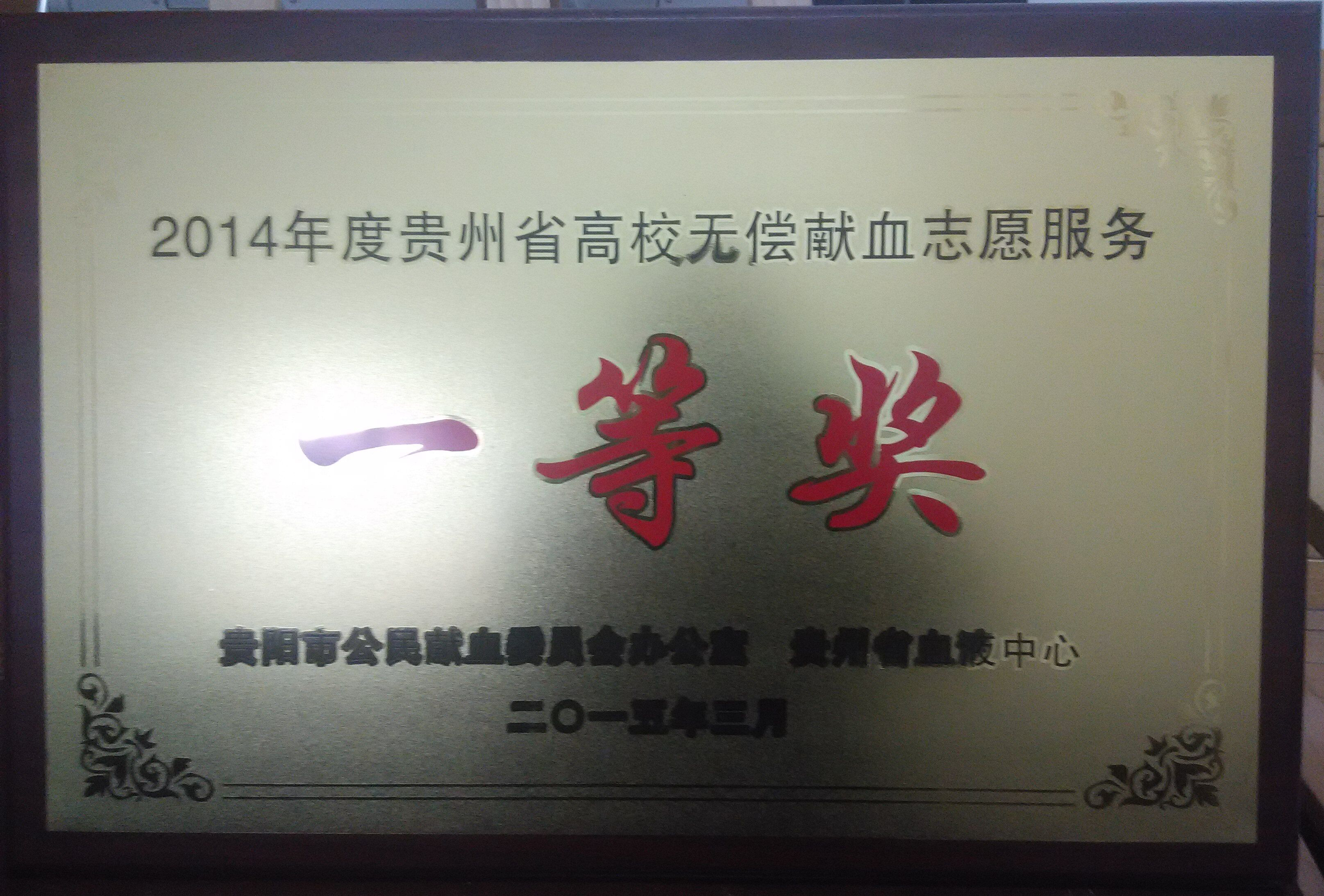 2014年,在校团委的指导下,我校青年志愿者协会与贵州省血液中心两次开展采血车进校园活动,我校师生秉承“奉献、友爱、互助、进步”的志愿精神,积极响应,踊跃参加,奉献一份爱心,承担一份社会责任,1000余名同学参加了无偿献血活动。