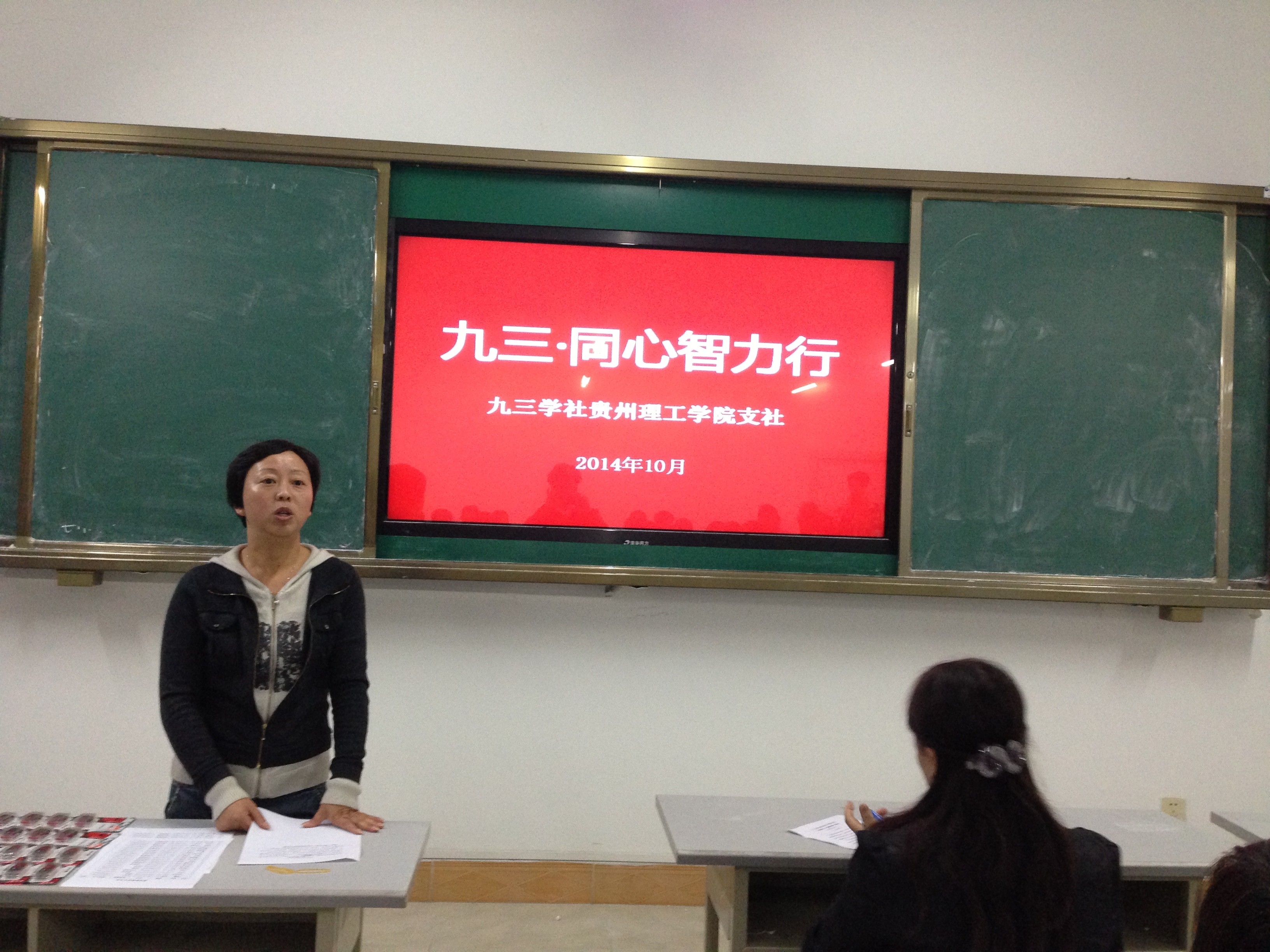 本网讯(申偲 肖志俊) 为充分响应九三学社省委关于开展全国首个“扶贫日”活动的倡导,10月15日下午,九三学社贵州理工学院支社利用课余时间,开展对2014级贫困生 “九三·同心智力行”捐赠活动。