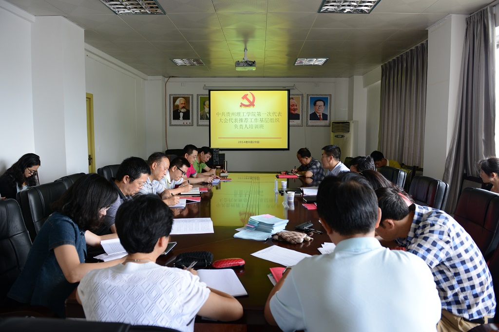 本网讯(组织部) 为进一步学习领会中央和省委关于换届工作精神和党代会组织指导工作的有关规定,保证中共贵州理工学院第一次代表大会顺利召开,8月29日上午,学校在主楼11楼会议室召开培训会,对党代会筹备相关工作进行培训。校党委书记曾羽,校党委副书记、校长龙奋杰出席,各党总支、机关各党支部负责人参会。