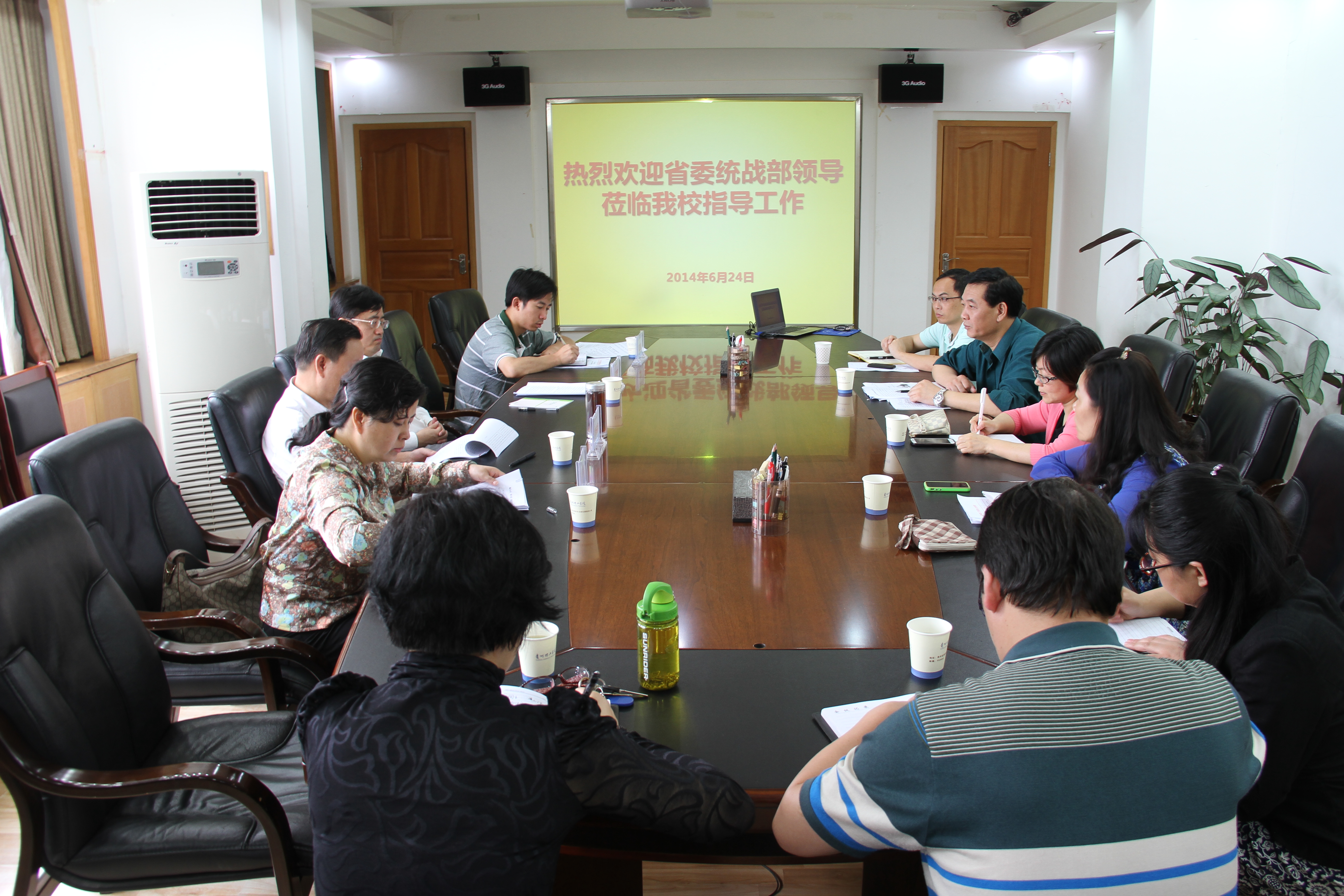 6月24日,省委统战部一处处长徐佑刚、六处处长杨声国一行到我校调研,与各民主党派和无党派人士进行了座谈。