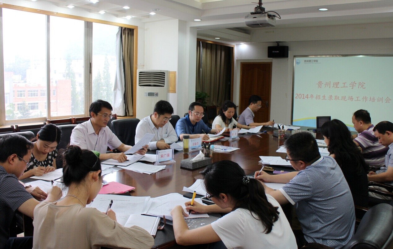 与会人员听取了《贵州理工学院关于认真做好2014年招生录取工作的安排意见》,学习了《2014年教育部普通高校招生录取工作视频会议有关精神》。招就处副处长李源对招生录取现场情况进行了说明。