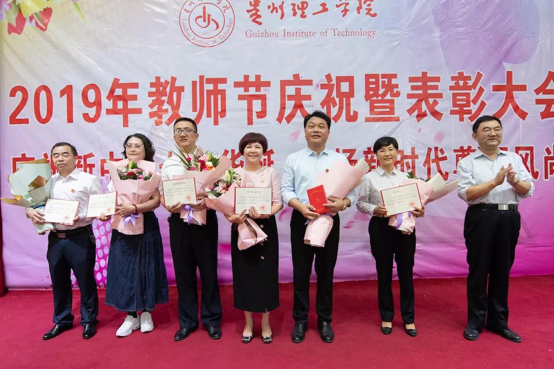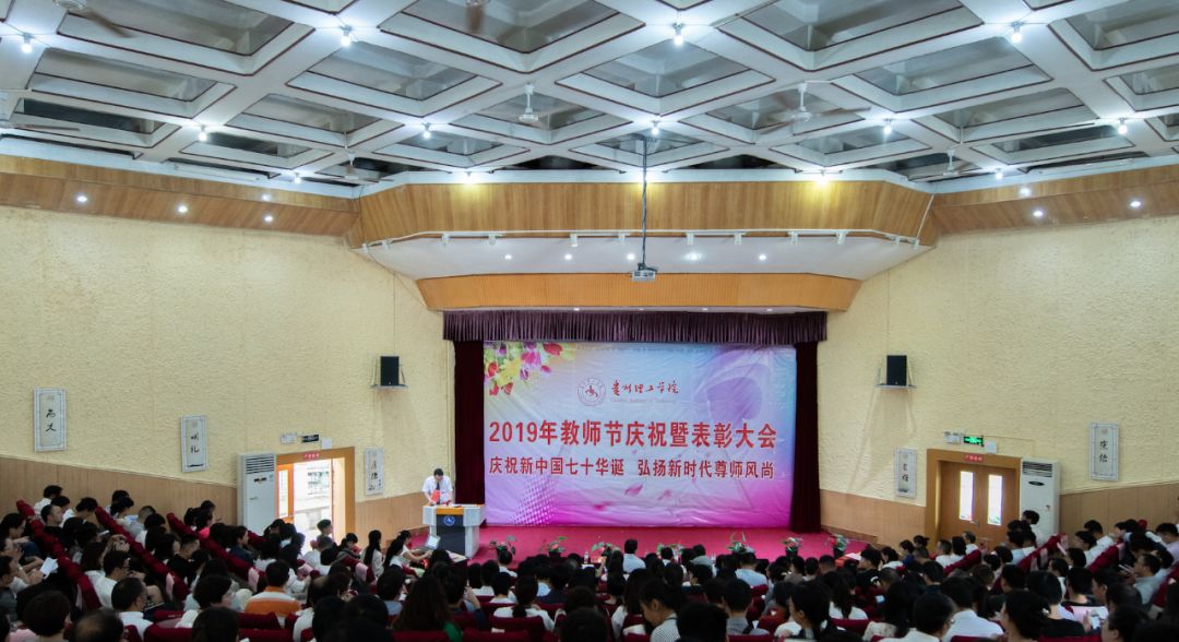 本网讯(党委宣传部 林春燕/文 记者团 陈传江/图)为庆祝第35个教师节,营造尊师重教的浓厚氛围,9月10日上午,贵州理工学院2019年教师节庆祝暨表彰大会在逸夫小报告厅举行。校领导曾羽、张波、宋建波、苏向东、胡兴灿出席大会,全校处级干部、全体新入职教师、2019年从事教育工作满30年的教职工、获表彰教师代表及学生代表欢聚一堂,表彰先进,共同庆祝属于教育工作者的节日。会议由副院长宋建波主持。