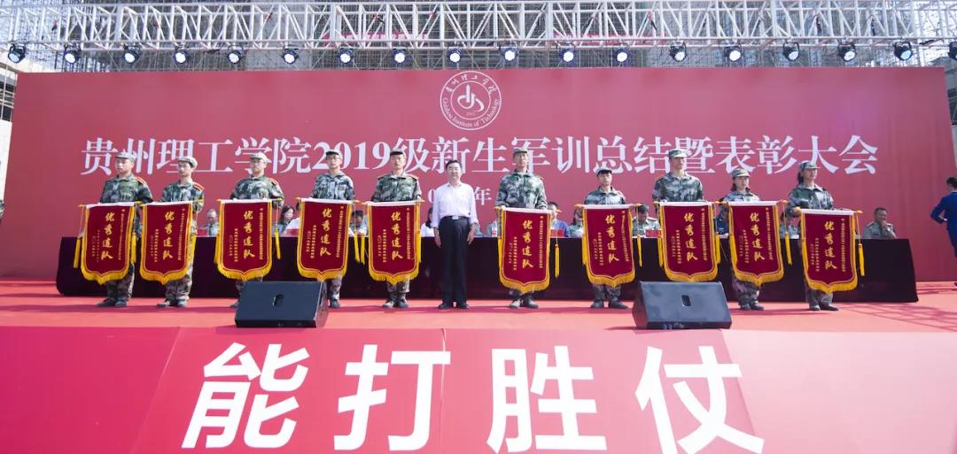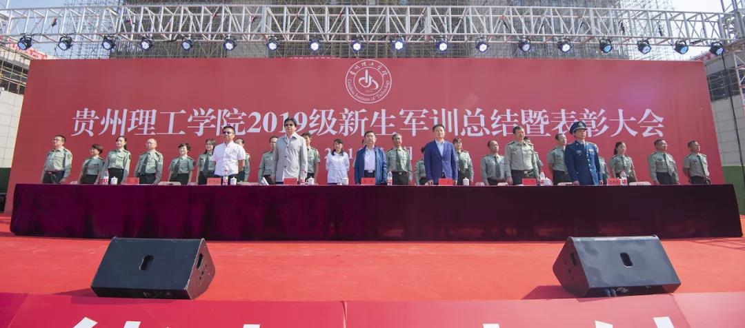 本网讯(学生工作部  江旭/文)九月的天空高远碧蓝,九月的大地硕果累累,九月的贵理工新生青年热血。9月27日,贵州理工学院2019级新生军训总结暨表彰大会在贵安校区隆重举行。为全体新生为期两周的军训画上圆满的句号。共青团贵州省委副书记丁毅,校领导曾羽、苏向东、梁杰、宋建波、胡兴灿、高勇,国防教育专家原空军大校李国强教授及承训部队领导出席大会,军训团全体成员、全体军训教官及2019级全体辅导员、班主任参加大会。