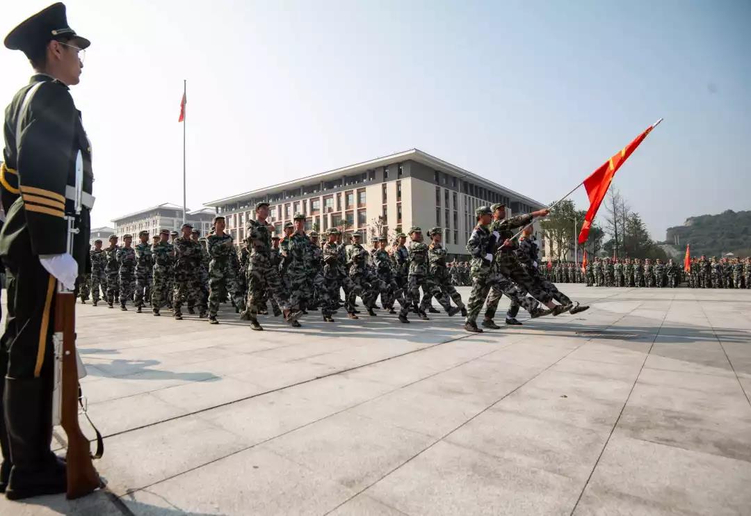 浩然书生气,沙场秋点兵。2019级新生军训团表演方队依次带来刺杀擒敌方阵、队列方阵、特种战术方阵、擒拿表演,整齐划一的步调,举手投足间,透出坚毅果敢的气质,昂扬向上的风采赢得了在场师生的阵阵掌声。
