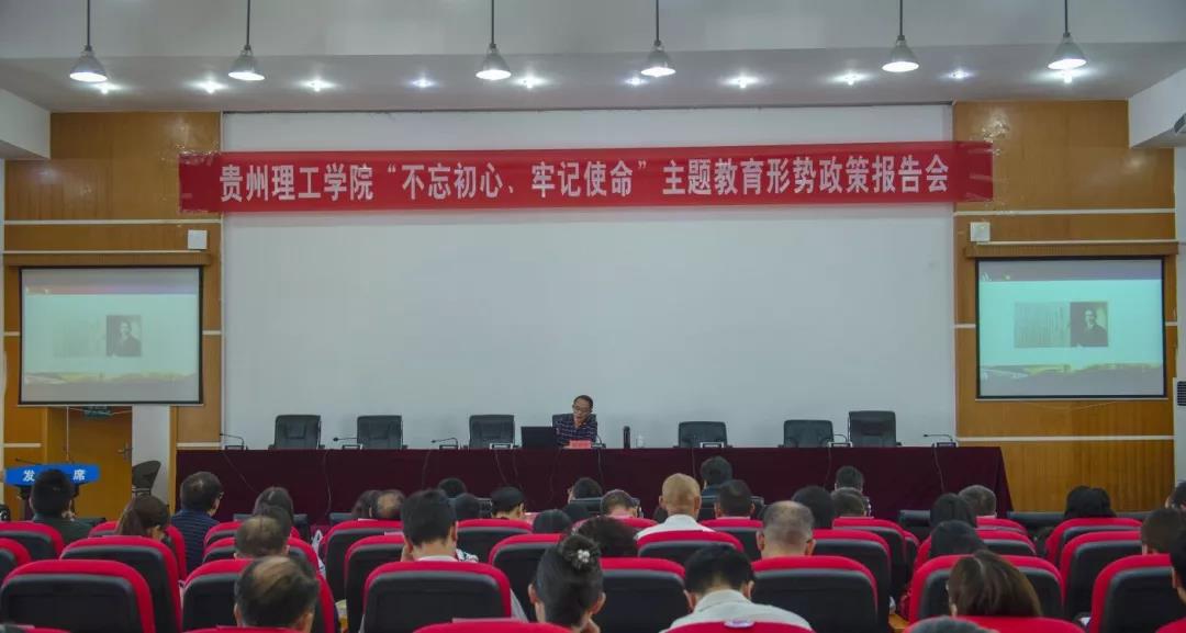 本网讯(刘玲/文)2019年9月28日下午,贵州理工学院“不忘初心、牢记使命”主题教育形势政策报告会在喀斯特报告厅举行,校领导曾羽、苏向东、胡兴灿、高勇以及全校处级以上干部参加报告会。