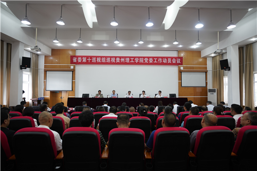 本网讯(宣传部 林春燕)根据省委关于巡视工作的统一部署,2019年10月8日上午,省委第十巡视组巡视贵州理工学院动员会召开。会前,巡视组组长钟海洋主持召开巡视组与校党委书记曾羽、院长苏向东的见面会,传达了省委书记孙志刚同志在省委常委会会议上听取十二届省委第六轮巡视情况汇报时的讲话精神,通报巡视任务和工作安排。动员会上,省委第十巡视组副组长何娉同志宣读了对贵州理工学院党委巡视的通知,组长钟海洋就即将开展的巡视工作作了动员讲话,贵州理工学院党委书记曾羽同志主持会议并就配合做好巡视工作作了表态发言。