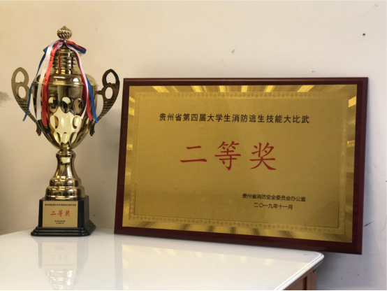 本网讯 2019年11月6日,全省“119”消防宣传月启动仪式暨“第四届大学生消防逃生技能大比武”活动在贵州民族大学举行,我校代表队在此次技能大比武中获得二等奖。