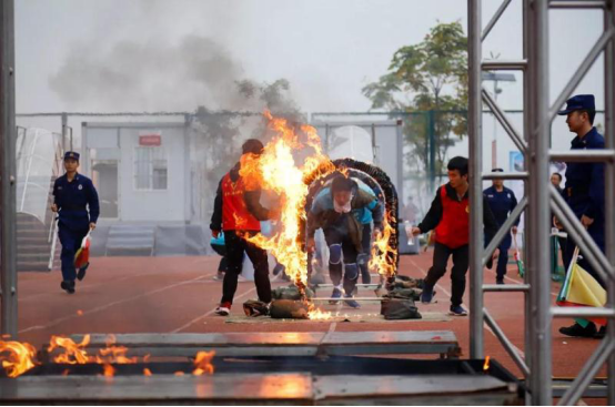 本次大学生消防逃生技能大比武共有12支高校参赛队参加,随着裁判一声令下,队员们携带装备奔跑在竞技赛道上。比赛现场气氛热烈,场下啦啦队加油助威,场上参赛队员奋起直追,队员们穿越一个又一个火场障碍,克服体能严重消耗的问题,奋力向终点冲刺。经过激烈的角逐,我校8名参赛队员以坚强的意志和良好的团队协作力圆满完成比赛,获得二等奖的骄人成绩。