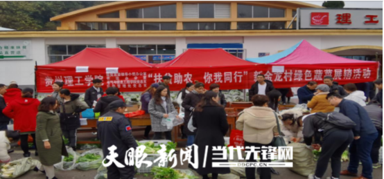 湄潭县复兴镇新金龙村是贵州理工学院定点扶贫点之一,2019年9月学校党委在深入调研了解到该村集体经济薄弱,集体经济几乎空白后,积极努力为该村找“穷根子”、开“药方”。从精准扶贫入手,充分利用我校人力、智力优势和师生饮食对农产品的需求,围绕蔬菜做文章,助力该村大力发展校农合作的蔬菜基地,打造“学校+村委+合作社+贫困户”的“四级校农结合”供需模式,对新金龙村已流转土地30亩种植的蔬菜,学校采取兜底购买蔬菜办法,划拨专项经费资助该村蔬菜基地的育苗大棚建设,从发展模式上突破以大户带散户、以点带面,将蔬菜种植成片,扩大蔬菜产业发展规模。通过订单生产、合同收购、按需配送,兜底购买,服务农村产业革命,助推新金龙村产业结构调整。在贵州理工学院良好的销售机制带动下,基地扶贫成效显著,三个月为新金龙村实现增收18万元,该村挣到了有史以来不靠政府拨款,而靠他们自身努力带着农民获得的第一桶金。同时该基地能提供12个长期稳定的工作岗位,以及40个季节性用工岗位,该项目受到了湄潭县委、县政府的肯定,2020年2月21日,新金龙村被湄潭县委、县政府授予2019年度农村产业革命先进集体。
