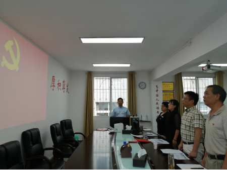 本网讯(后勤管理处 易欣)为庆祝中国共产党建党99周年,大力弘扬党的光辉历程和丰功伟绩,增强党组织的创造力、凝聚力和战斗力,充分发挥党组织战斗堡垒作用,激发广大党员发挥先锋模范作用,7月1日,后勤管理处党总支开展“重温入党誓词、过政治生日”主题党日活动。副院长胡兴灿到会指导,后勤管理处党总支全体党员参加活动。