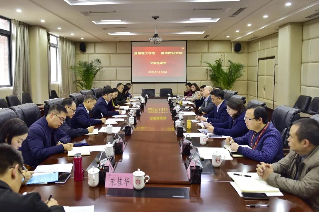 本网讯(党委办公室 邓毓政)2020年11月3日上午,校党委书记曾羽,纪委书记、监察专员贺梦依、副院长林长松一行10人到贵州财经大学调研,贵州财经大学党委书记刘雷,纪委书记、监察专员龙化出席了调研座谈会。会议由贵州财经大学党委副书记朱克乾主持。