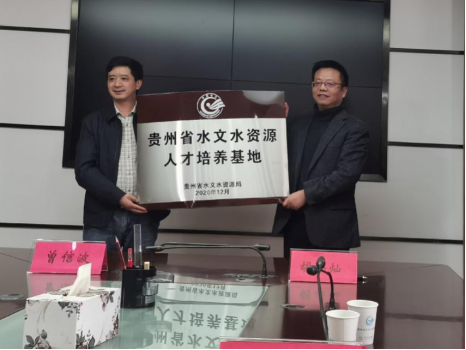 签约仪式上,胡兴灿、曾信波共同为“贵州理工学院实习实训基地”揭牌,同时为“贵州省水文水资源人才培养基地”授牌。
