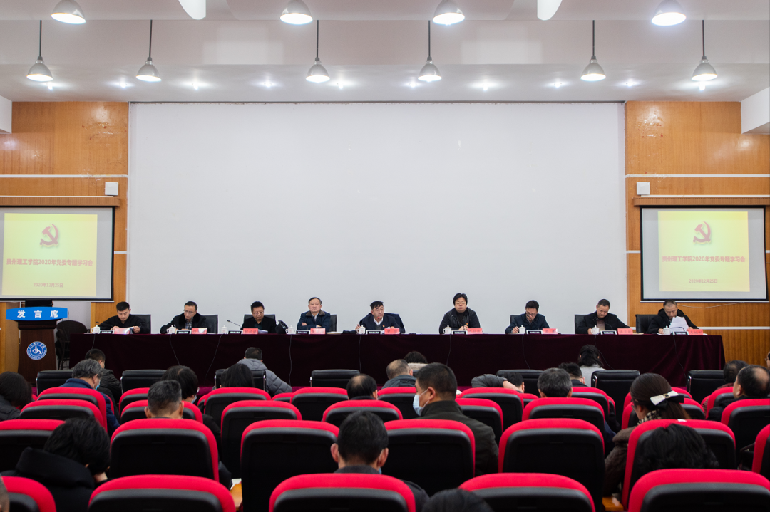 本网讯(党委办公室 刘萍)2020年12月25日下午,我校在喀斯特报告厅召开省委经济工作会议专题学习会,校党委委员,党政群各部门、各学院党政主要负责人参加会议。