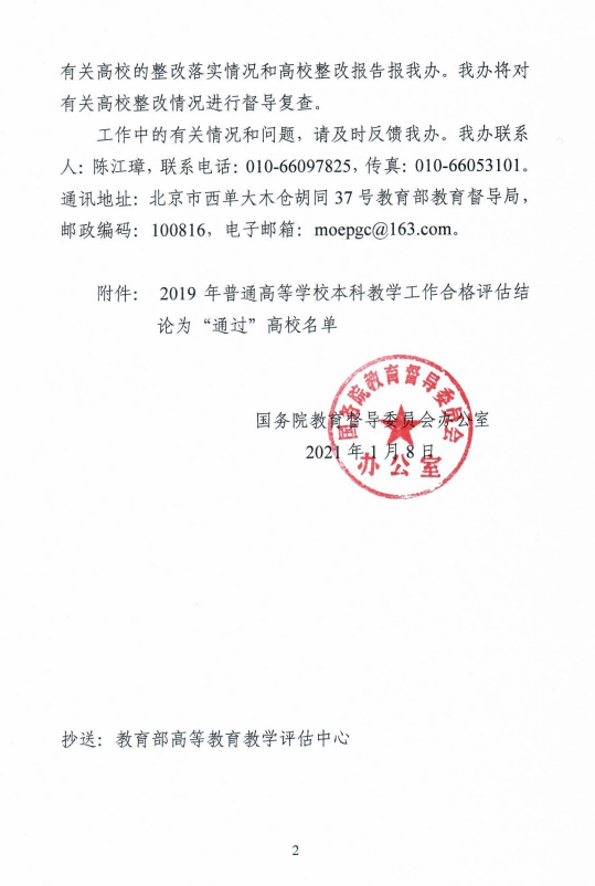 本网讯(党委宣传部 杨涛)近日,国务院教育督导委员会办公室发布了《关于公布2019年普通高等学校本科教学工作合格评估结果的通知》(国教督办函〔2021〕2号),公布了评估结果为“通过”的23所学校名单,贵州理工学院顺利通过教育部普通高等学校本科教学工作合格评估。
