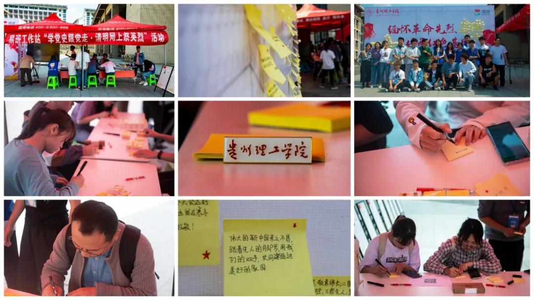 贵州理工学院易班工作站在学生食堂前开展了线下寄哀思活动,重温党的光荣历史,缅怀革命先烈,传承红色基因。在一幅幅展板前,同学们驻足凝望那峥嵘岁月的历史故事;在一张张贴纸上,同学们执笔写下对革命先辈们的缅怀之情。同学们纷纷表示此次活动让自己回顾了革命年代的苦难艰辛,体悟到革命先辈们团结一致、百折不挠的革命精神,并深刻感慨今天的幸福生活来之不易,定当珍惜。