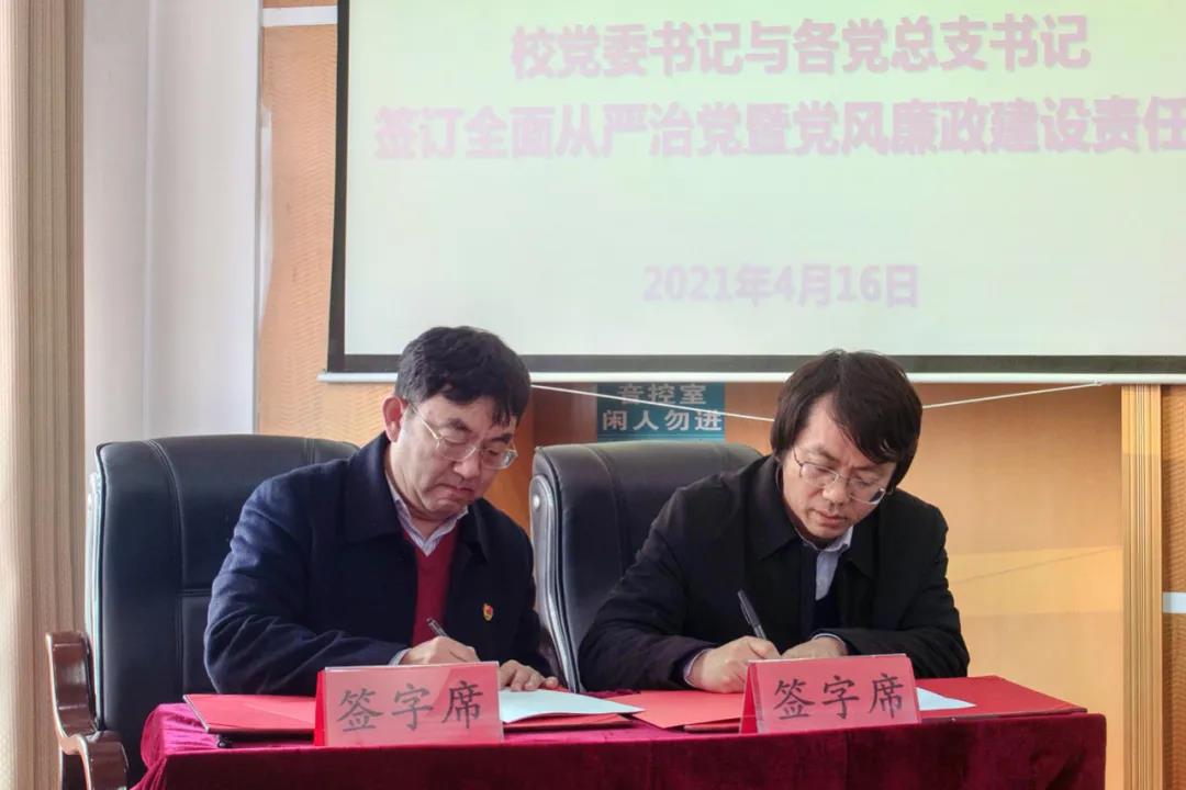 会上,党委书记曾羽与校领导班子成员及教务处、后勤管理处、机械工程学院、土木工程学院、建筑与城市规划学院5个单位党总支书记现场签订责任书。资源与环境工程学院、经济管理学院、食品药品制造工程学院总支书记就落实全面从严治党主体责任作交流发言。
