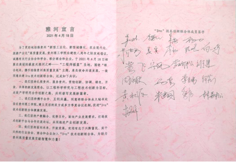 参会单位代表就“3+N”技术创新联合体发展目标、运行机制等进行了热烈深入交流,达成共识并发布了《雅河宣言》,同意将秘书处永久设在贵州理工学院。