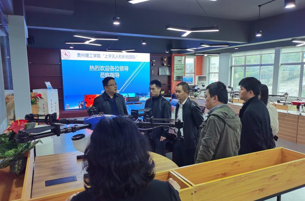 本网讯(图/骞羽科创团队 文/杨登红)2021年4月20日上午,贵阳市科技局党组书记、局长张宇、农业农村处处长李盛黔、办公室一级科员王锋一行3 人,就贵阳市农业科技工作方案到我院调研山地智能点播播种无人机和植保无人机项目,学校副校长林长松、校长助理莫立坡、科技处处长黄芳、创新创业中心主任顾亚丽陪同调研。