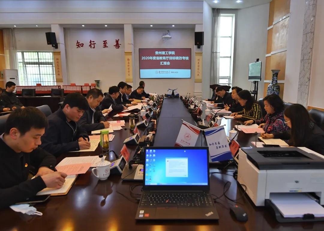 本网讯(党委组织部 王丽莎)4月22日,省委教育工委、省教育厅2020年度目标绩效考核专家组组长周宝英一行赴我校开展现场考核。考核汇报会在喀斯特会议厅召开,考核专家组组长、省教育厅原巡视员周宝英,副组长、遵义师范学院党委委员、副院长娄胜霞,副组长、安顺学院副院长张来,校领导曾羽、苏向东、吴次南、胡兴灿、林长松、张开智、莫立坡出席会议,相关职能部门负责人参加会议。会议由娄胜霞主持。