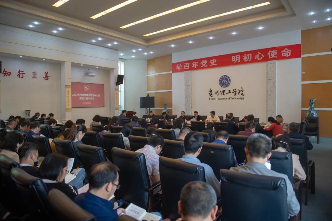 本网讯(党委宣传部 林春燕/文 杨斌强/图)4月30日上午,贵州理工学院党委理论学习中心组在喀斯特会议厅开展党史学习教育第二次专题学习。校党委委员曾羽、苏向东、吴次南、胡兴灿、张开智、李朋,校长助理莫立坡,校直各部门、各教学教辅机构党政主要负责人参加了学习。
