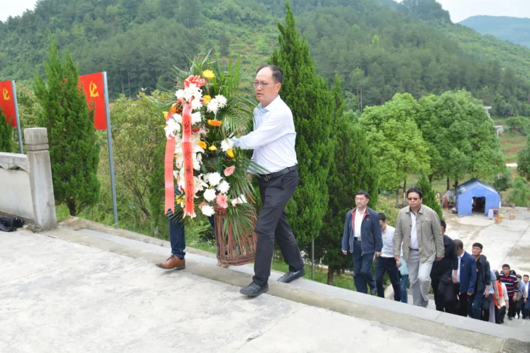 在困牛山红军壮举纪念碑前,校党委书记曾羽带领全体成员怀着无比敬仰的心情向红军烈士敬献花篮,整理挽联,集体默哀,并缓步瞻仰红军烈士纪念碑,对红军烈士致以沉痛的哀悼和崇高的敬意。