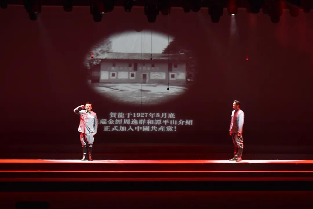 在近90分钟的演出时间里,演员们精彩演绎了“改造贺龙的部队”“引导贺龙与周恩来见面”“南昌起义”“介绍贺龙入党”等片段,观众们被扣人心弦的故事所打动,被周逸群坚定的革命信仰深深感染,台下掌声不断。《一生交给党》这是以时代的名义向英烈致敬,用艺术的手法呈现红色文化的魅力,展现了周逸群同志用鲜血践行的誓言“我的一生交给了党,交给革命事业,我从未后悔,始终从容!”