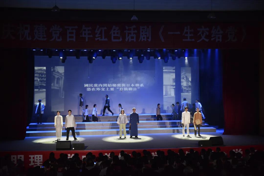 本网讯(巫敏)“今日宏愿酬,一生交给党,斗志昂扬。愿为工农革命,洒热血一腔”!伴随着庄严的《国际歌》,6月26日晚,庆祝建党百年红色话剧《一生交给党》在贵州理工学院逸夫大礼堂倾情上演。