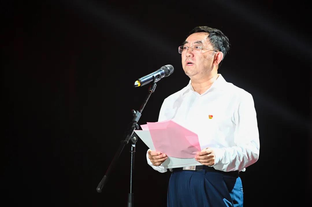 贵州理工学院党委书记曾羽深情致辞,他说,贵州大学和贵州理工学院共同创作的红色话剧《一生交给党》的演出,必将进一步掀起学校传承红色基因、弘扬革命精神的热潮。他表示,贵州理工学院全体师生要从无产阶级革命家的事迹中汲取奋进力量;要进一步扎实开展好党史学习教育,切实做到学党史、悟思想、办实事、开新局;要在围绕“四新”抓“四化”中主动作为,做出理工人应有的贡献。历史是最好的教科书,对历史的最好纪念,就是创造新的历史。抚今追昔,展望未来,让我们携起手来,共同开启建设区域有影响的理工大学新征程,推动学校高质量发展,以优异的成绩献礼建党百年!