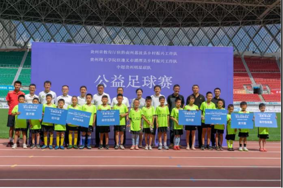 9月4日,由贵州省教育厅驻黔南州荔波县乡村振兴工作队、贵州理工学院驻遵义市湄潭县乡村振兴工作队共同发起的主题为“情系‘留守儿童’助力乡村振兴”公益足球赛以及爱心捐赠在贵阳市奥体中心体育场举行。