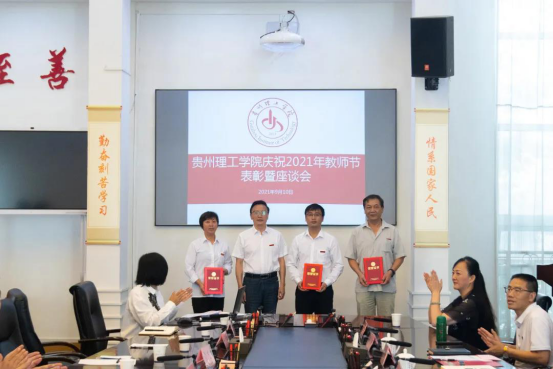 为庆祝第37个教师节,团结凝聚我校教师担负起立德树人根本任务,9月10日上午,贵州理工学院在喀斯特会议厅举行“赓续百年初心,担当育人使命”2021年教师节庆祝暨表彰会。校领导苏向东、高勇、张开智、莫立坡,校党委委员左柏州、李朋,教师代表、相关部门负责人欢聚一堂,表彰先进,共同庆祝属于教师的节日。会议由校长助理莫立坡教授主持。