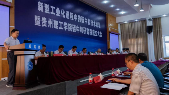 开幕式上,贵州理工学院党委副书记吴次南致开幕词,他从国家“碳达峰”“碳中和”背景下以及贵州省新型工业化发展战略角度,对贵州理工学院举办本次论坛的紧迫性、必要性及意义等方面做了阐述,同时对成立贵州理工学院碳中和研究院的背景、研究重点和目标、责任作了介绍说明。他强调,贵州理工学院是贵州省唯一的理工科大学,学校有责任紧密结合贵州经济社会发展需求,践行初心、担当使命,发挥学校基础研究和学科交叉融合的优势,实现跨学校、多学科联合创新,集中优势资源加快突破“碳中和”领域关键核心技术,做贵州工业发展的坚挺脊梁,为贵州省在“双碳”背景下构建高质量发展工业产业体系献言献策。