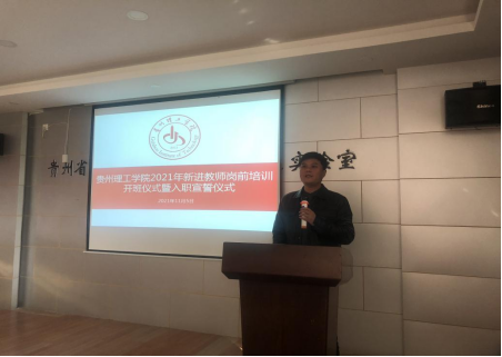 本网讯(教师工作处 钟培元)“我是一名光荣的人民教师,忠诚党的教育事业,贯彻党的教育方针,履行教师神圣职责……”40余名新进教师在采矿楼三楼会议室庄严宣誓,誓言铿锵有力,承诺掷地有声。11月5日下午,贵州理工学院2021年新进教师岗前培训开班仪式暨入职宣誓仪式在庄严的国歌声中拉开帷幕。党委副书记高勇、校长助理莫立坡出席开班仪式。开班仪式由教师工作部(处)负责人主持。
