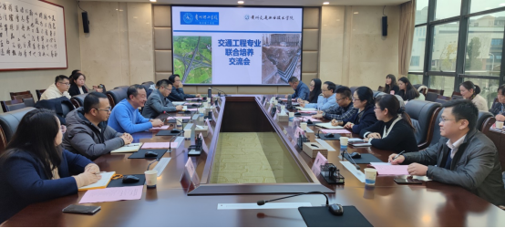 交流座谈会上,贵州交通职业技术学院教务处、学生工作处、招生就业处、建筑工程系相关负责人就学生培养过程中的细节与我校进行了沟通。会上,建筑工程系副主任龙建旭介绍了联合培养工作推进情况,双方就教学管理、学生管理、创新创业教育、招生就业等方面进行全面沟通,就有关问题达成共识。双方表示一切以学生为中心,充分发挥双方优势互补作用,共同探索“专升本”联合培养模式,给同学们创造良好的培养环境,共同努力为社会培养出高素质的工程管理人才。