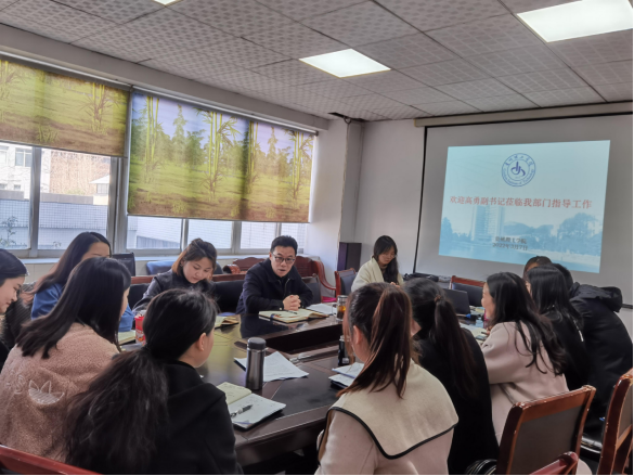 本网讯(国际交流与合作处、国际教育学院 孔令昱)2022年3月7日下午,校党委副书记高勇到国际交流与合作处、国际教育学院调研指导工作,国际交流与合作处(国际教育学院)处长乔靖、党总支副书记章丽娥、副院长徐丽丹,全体教职工参加调研座谈会。