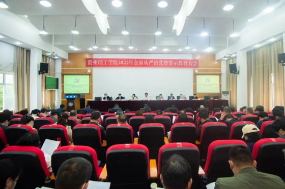 4月14日,贵州理工学院2022年全面从严治党暨警示教育大会在喀斯特报告厅召开,深入学习领会习近平总书记重要讲话精神和中央纪委、省纪委全会要求,一以贯之落实全面从严治党方针方略,落实立德树人根本任务,总结2021年工作,对2022年全面从严治党工作进行安排。校领导苏向东、潘良明、胡兴灿、贺梦依、林长松、张开智以及校党委委员左柏州、李朋出席会议。校党委副书记、校长潘良明主持会议。