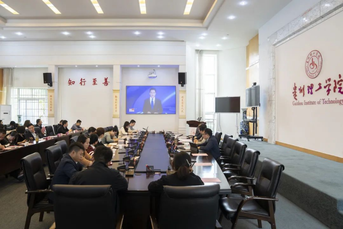 潘良明宣读了《致贵州理工学院科技工作者的一封信》向全校科技工作者表示诚挚的感谢和崇高的敬意,希望学校广大科技工作者沉下身、静下心,以老一辈科技工作者为榜样,大力弘扬中国科学家敢为人先的创新精神,不断向科学技术广度和深度进军,在服务多彩贵州现代化建设征程上展理工人的风采。他强调,贵州理工学院是一所充满年轻活力的院校,学校广大科技工作者要围绕“四新”抢抓“四化”来做科研,狠抓技术攻关,凝聚一股“强省会”的理工科技力量。