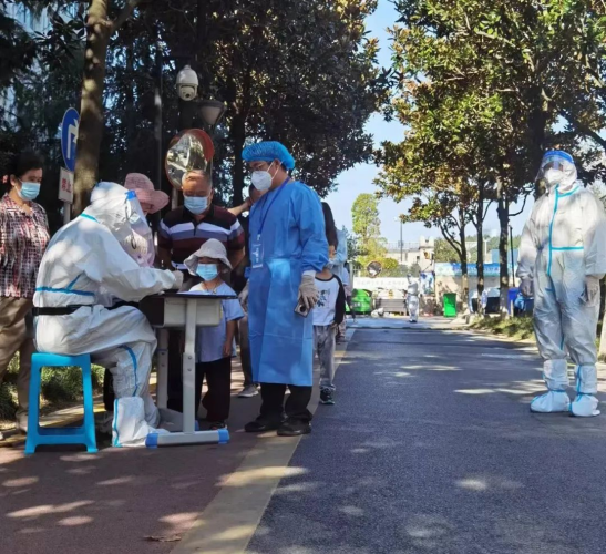 从穿起红马甲维持秩序,到换成白色防护服挨家挨户派发抗原检测试剂盒并宣传抗原检测视频和亲自示范。面对一些年龄较大的老年人除了宣传常规知识还需要亲自给他们做抗原检测,在金华园社区,资源与环境工程学院的肖德安老师作为一名志愿者,帮助社区电话联系黄码人员核实情况、登记志愿者、协助开展核酸检测、卡点站岗执勤、采集志愿者服务图片、编写志愿者宣传资料等。在提到志愿者服务时,他坚定地说道“只要我们都献出一点爱,没有战胜不了的困难。”