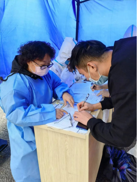 “每天天不亮,我们就要到社区开始准备核酸筛查的相关工作,然后开始深入社区各栋楼房开展摸排、登记各种信息,面对疫情,我只想尽自己最大的努力去帮助更多需要帮助的人”教学质量评估中心的教师魏节敏,谈及自己的志愿者工作时,除了疲倦更多的是自豪之情,在金华园社区恒大金阳新世界山临境小区,作为一名核酸检测志愿者,她参与475名小区居民的核酸检测登记核查工作,登记社区居民检测信息,核查完成核酸检测人员情况,分发家庭检测人员信息登记卡,登记不在本小区的业主情况等工作。