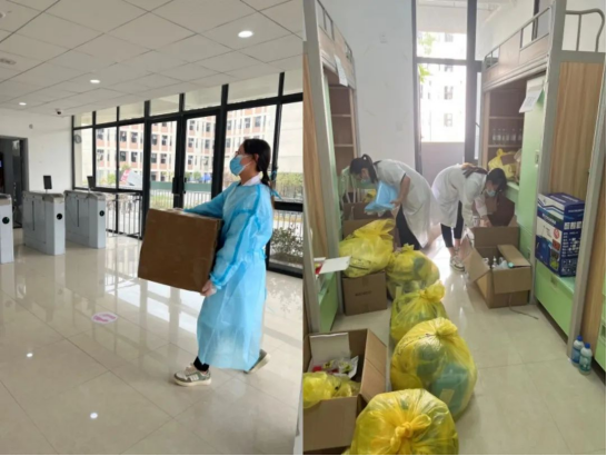 长期抗疫十分考验毅力,20天来,张缤月说:“校医务室成了最忙碌的科室,我们人人都是防疫员,个个都是战斗员”,每天高强度的工作,24小时值班,最忙的时候一天只能睡两三个小时囫囵觉,这就是落在男医生身上,恐怕也难以承受,但医务室的“铿锵玫瑰”们以顽强的毅力,硬是挺了过来,因为他们心中有着一个坚定的信念:做好校园防控,守护好师生健康。抗疫期间,医务室每天接诊出诊若干病人,出诊急诊十来起,半夜也在处理各种突发情况,接收物资、整理物资、物资出库入库、隔离室学生管理、发热学生管理以及各种巡诊,每天凌晨五点提前布置核酸采集现场工作,志愿者培训,核酸人数计算,超负荷超体力透支,好几次扛不住,他们都告诉自己,一定要坚持,一个都不能倒下。