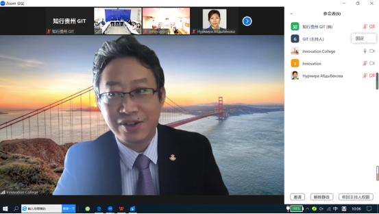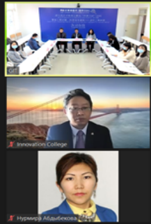 Abdybekova Nurmira在视频讲话中表达了对此次培训的感谢,期待双方未来能够继续深化彼此合作模式,在师生互访、学术讲座、科学技术论坛及举办两校文化体育赛事活动等方面展开进一步的合作。