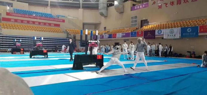 整个比赛激烈异常,贵州理工学院击剑队队员均是初次参加比赛,但初生牛犊不怕虎,队员们充分发挥勇于拼搏、迎难而上、团结一致的体育精神。在男子佩剑半决赛,面对香港中文大学,由于初次参赛,进入状态较慢,我方一度落后对手10剑,王东扬上场后耐心观察对手,抓住对方的漏洞形成有效的防守反击,一剑剑追上比分,反超对方4剑,鼓舞了队员们的士气。随着局势的变化,对手产生了慌乱情绪,开局的优势一步步被瓦解,最后我队以45:44险中求胜。