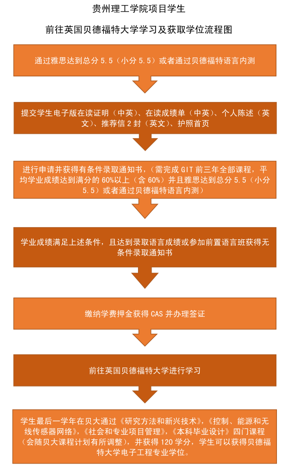 国内第四年:学生第四年在贵州理工学院全日制完成贵州理工学院及贝德福特大学专业核心课程学习与专业综合实践。