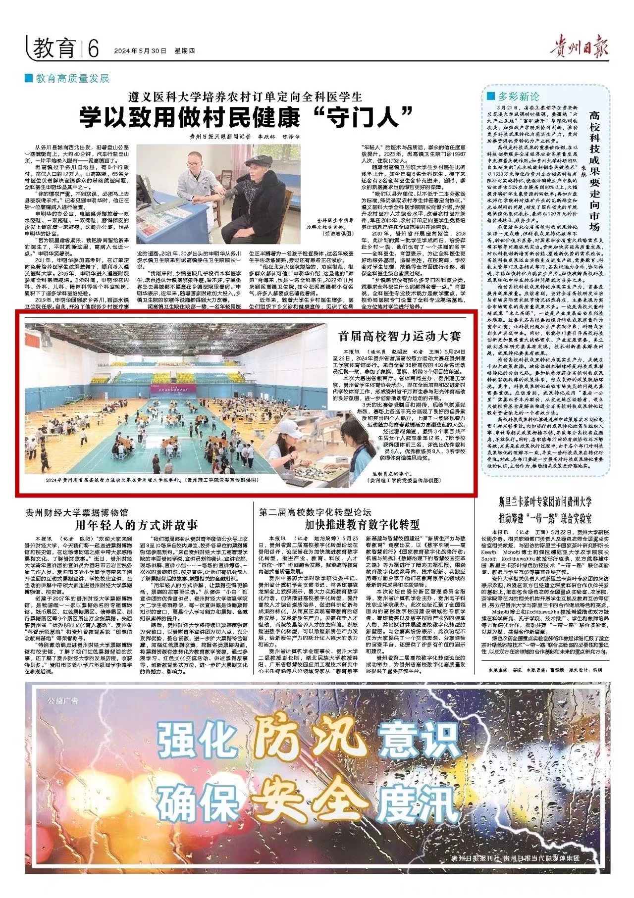 5月30日,贵州日报第六版报道“首届高校智力运动大赛”,全文如下: