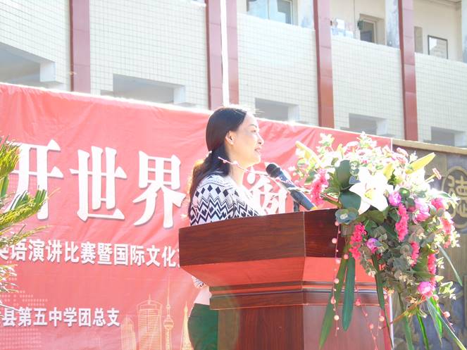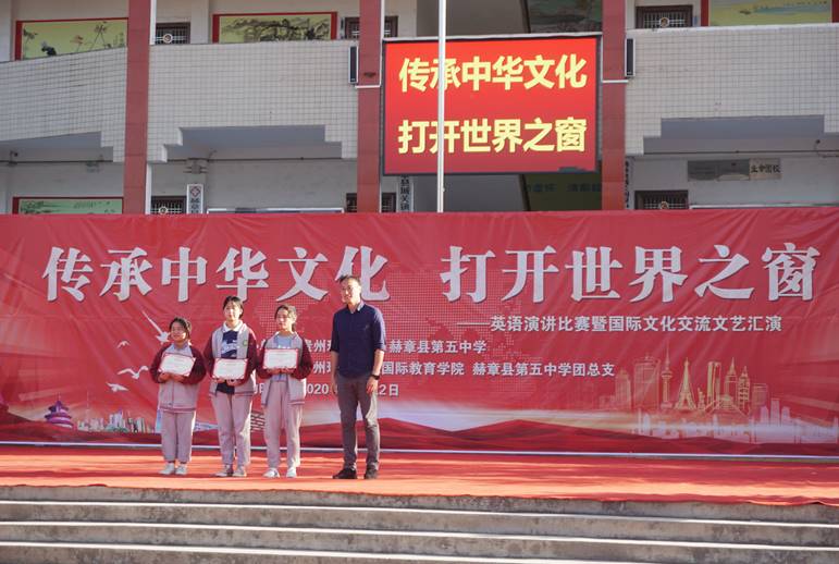 本网讯(国际教育学院 黎娟)为进一步落实2020年“一总支一项目”工作,经过前期沟通和准备,国际教育学院党总支充分发挥自身特色和优势,于10月22日继续走进赫章县第五中学,开展“传承中华文化,打开世界之窗——英语演讲比赛暨国际文化交流文艺汇演”教育扶贫活动。国际教育学院党总支书记孙凯、院长乔靖、党总支副书记杜玉红,赫章县教育局教研室教研员李伟及赫章县第五中学校长舒鹏、副校长李曦、副校长朱国强出席了此次活动。