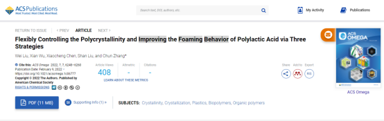 本网讯 日前,材料与能源工程学院刘伟教授和张纯教授在ACSOMEGA上发表了题为《通过三种策略灵活控制聚乳酸的多晶性能并改善其发泡行为》(Flexibly Controlling the Polycrystallinity and Improving the Foaming Behavior of Polylactic Acid via Three Strategies)的研究论文。