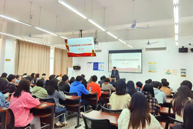 5月20日上午,苏向东在贵安校区为建筑与城市规划学院、大数据学院、理学院师生代表宣讲。会上,苏向东从“深刻把握省第十三次党代会的重大意义”“深刻把握衷心拥护‘两个确立’、忠诚践行‘两个维护’是本次大会的主旨灵魂”“深刻把握过去五年的历史性成就和经验启示”“深刻把握我省今后五年工作的总体要求、主战略、主定位和奋斗目标”“深刻把握今后五年贵州高质量发展的重点任务”“深刻把握实现未来奋斗目标的政治保证”“深刻把握学习贯彻落实大会精神提出的要求”等七个方面对党代会精神进行了深入浅出的解读,并对全校教职工生学习贯彻落实党代会精神提出明确要求。他强调,学习宣传贯彻省第十三次党代会精神是当前和今后一个时期学校的重大政治任务,要提高政治站位,深刻领会本次大会主旨灵魂的重大政治意义,迅速将思想和行动统一到省第十三次党代会要求上来,衷心拥护“两个确立”、忠诚践行“两个维护”。同时,他鼓励青年学子要不负韶华,不负时代,不负人民,自觉把青春融入未来的家乡建设中,在多彩贵州现代化建设新征程中放飞青春梦想、实现人生精彩。