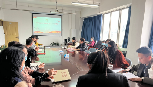 11月11日,外国语学院党总支书记徐焱以“学习宣传贯彻党的二十大精神”为题,围绕党的二十大主题和重大意义、过去五年的工作和新时代十年的伟大变革、开辟马克思主义中国化时代化新境界、新时代新征程中国共产党的使命任务、十二条基本方略五个方面对学院全体教职工进行宣讲。